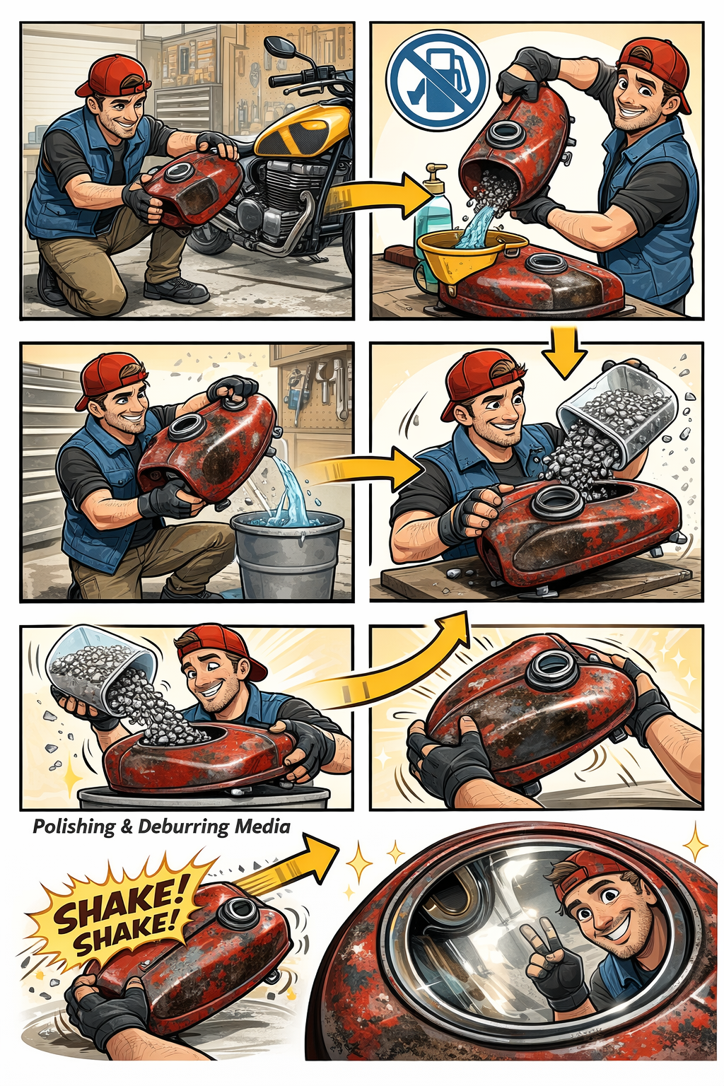 A mechanical approach to cleaning motorcycle fuel tanks without relying on harsh chemicals.